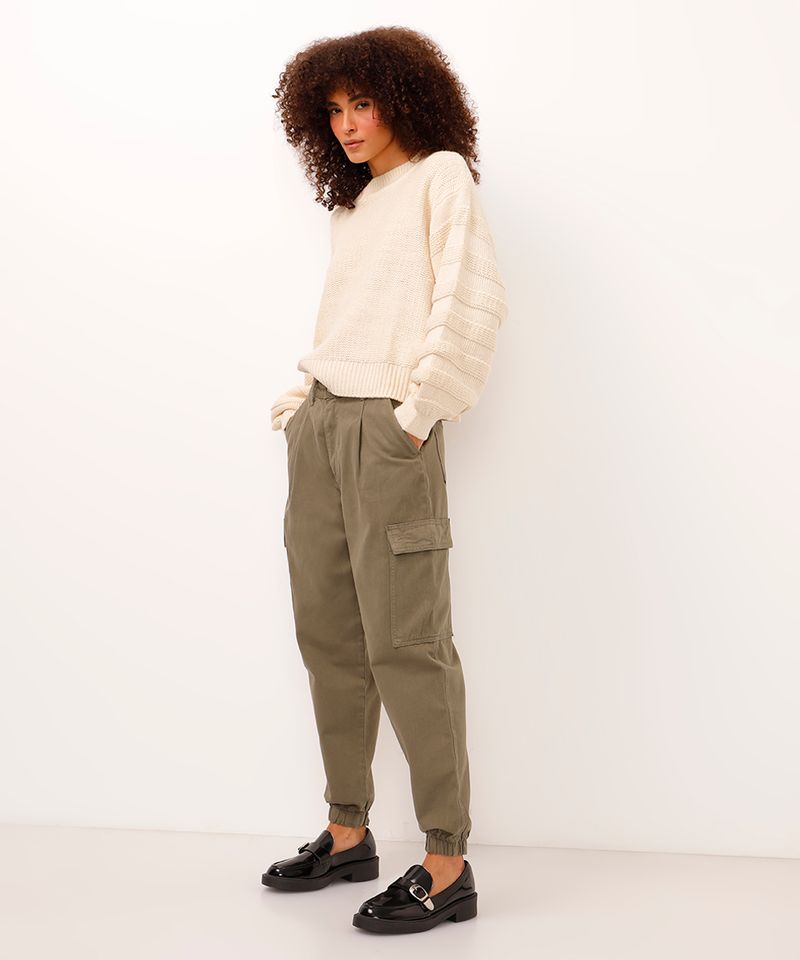 Renove seu estilo com a praticidade e o conforto da calça jogger cargo. Esta peça une a tendência utilitária dos bolsos cargo com a modelagem despojada da jogger, criando um visual moderno e versátil. Confeccionada em sarja de algodão, oferece um caimento solto e estruturado, ideal para quem busca uma calça feminina confortável para o dia a dia. Sua cintura alta permite diversas combinações, adaptando-se facilmente a diferentes estilos.