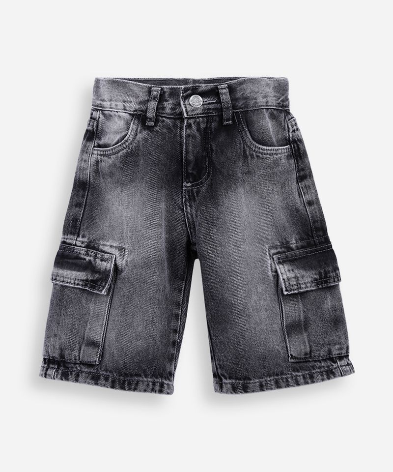 Perfeita para os meninos cheios de energia, esta bermuda cargo infantil combina estilo e funcionalidade em uma única peça. Confeccionada em jeans 100% algodão, ela oferece um toque macio e um caimento solto que garante liberdade total para todas as brincadeiras. É a escolha ideal para compor looks modernos e confortáveis para o dia a dia, sendo uma ótima opção de roupa infantil para menino.