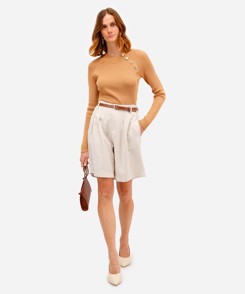 Esta bermuda de alfaiataria foi desenhada com detalhes que fazem a diferença:
