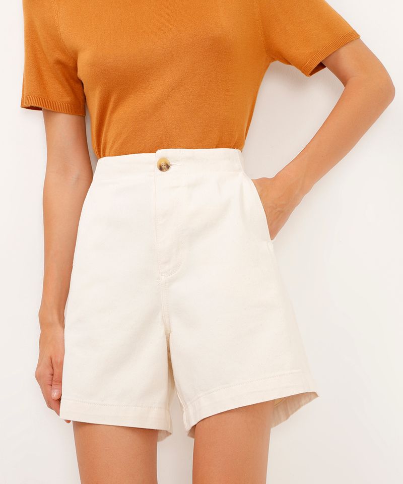 Esta bermuda feminina se destaca por seus detalhes que unem estilo e funcionalidade: