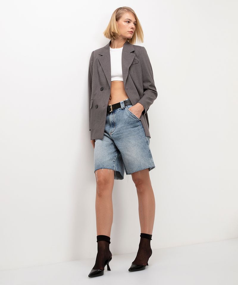 Renove seu estilo com a bermuda jorts, a peça que une o conforto do jeans com as tendências mais atuais. Com uma lavagem de aspecto vintage, esta bermuda jeans feminina oferece versatilidade para compor looks incríveis. Seu tecido 100% algodão garante um caimento confortável, enquanto o design inteligente permite que você solte a criatividade nas produções do dia a dia.