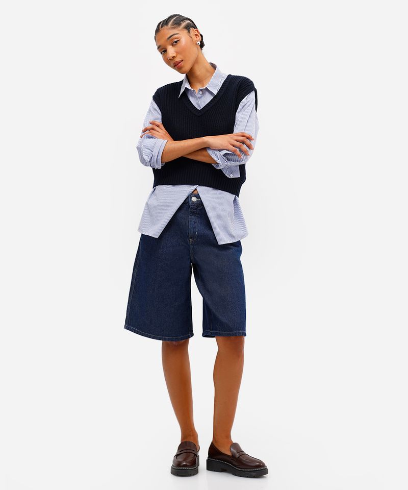 Aposte na tendência dos jorts com esta bermuda jeans feminina, a peça ideal para compor um visual moderno e cheio de personalidade. Com um design que une o conforto da bermuda e o estilo dos shorts mais amplos, este modelo oferece um caimento solto e estruturado, perfeito para o dia a dia. Confeccionada em jeans de algodão, a peça garante um toque macio e respirabilidade, tornando-se um item versátil para diversas ocasiões.