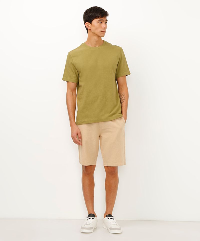 Sugestões de Uso e Combinações Para um visual elegante e descontraído, combine esta bermuda masculina com uma camisa de botão de linho ou algodão e mocassins. Se a ocasião for mais informal, aposte em uma camiseta básica e tênis casuais. A peça é um verdadeiro curinga para criar produções frescas e cheias de estilo.