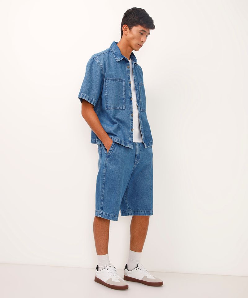 Renove seu visual com esta bermuda masculina jeans, a escolha certa para quem busca conforto e um estilo despojado. Inspirada na cultura urbana, sua modelagem skater oferece liberdade de movimento e um caimento relaxado, perfeito para o dia a dia. Confeccionada em tecido de algodão, a peça proporciona um toque macio e respirabilidade, tornando-se um item indispensável no seu guarda-roupa.