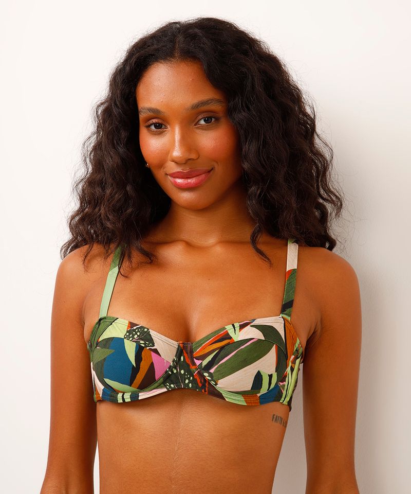 Este top de biquíni une design moderno e conforto para seus dias de sol. Com uma vibrante estampa de folhagem, a peça oferece excelente sustentação e um caimento que se adapta ao corpo. É a escolha ideal para quem busca um visual estiloso e seguro para aproveitar a praia ou a piscina.