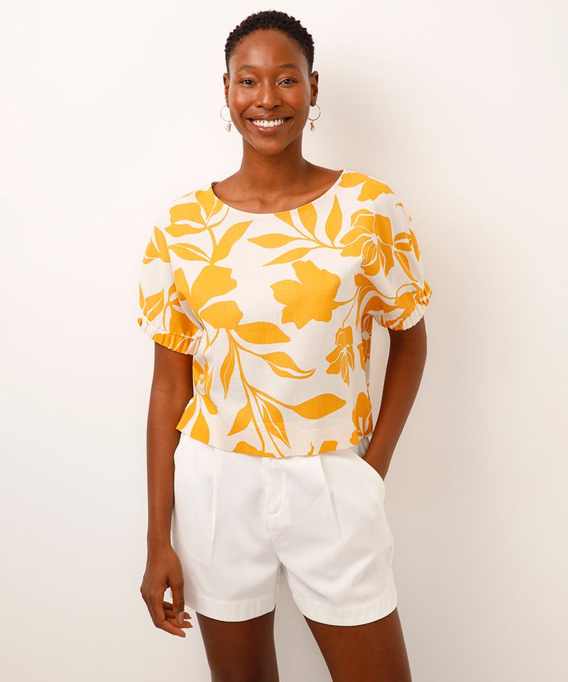Esta blusa feminina de manga curta é a escolha perfeita para adicionar um toque de frescor e sofisticação aos seus looks. Confeccionada em um tecido leve com linho em sua composição, ela oferece um toque macio e um caimento solto que garante conforto durante todo o dia. A estampa floral vibrante traz a alegria do verão para o seu guarda-roupa, tornando a peça versátil para diversas ocasiões.