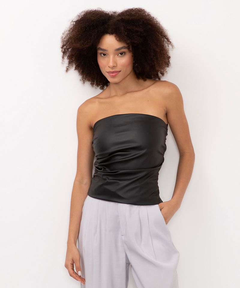 Adicione um toque de atitude e sofisticação ao seu visual com este top feminino. Confeccionado em poliuretano, o modelo se destaca pelo design moderno e caimento ajustado ao corpo. É uma peça versátil, perfeita para compor looks que vão do casual ao elegante, garantindo um estilo marcante em qualquer ocasião.
