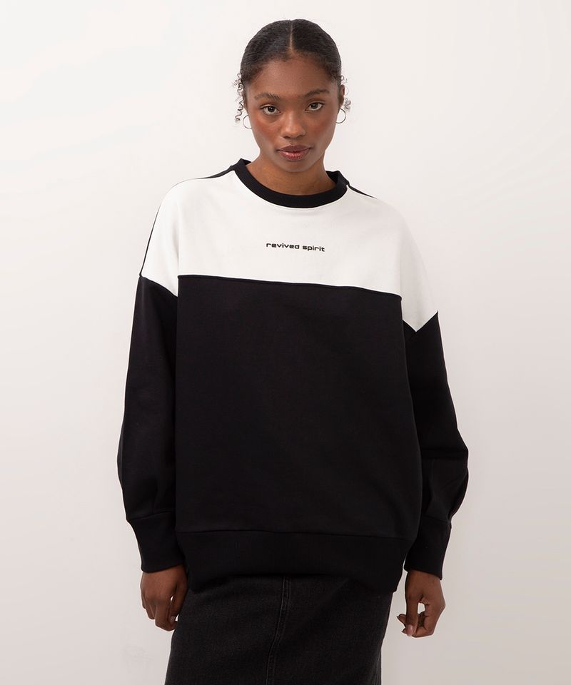 Renove seu estilo com este blusão de moletom feminino, a peça perfeita para unir conforto e tendência em qualquer estação. Confeccionado em moletom macio com felpa interna, ele oferece um toque aconchegante e um caimento solto que garante liberdade de movimento. Seu design bicolor em preto e branco é moderno e versátil, ideal para compor looks despojados e cheios de personalidade.