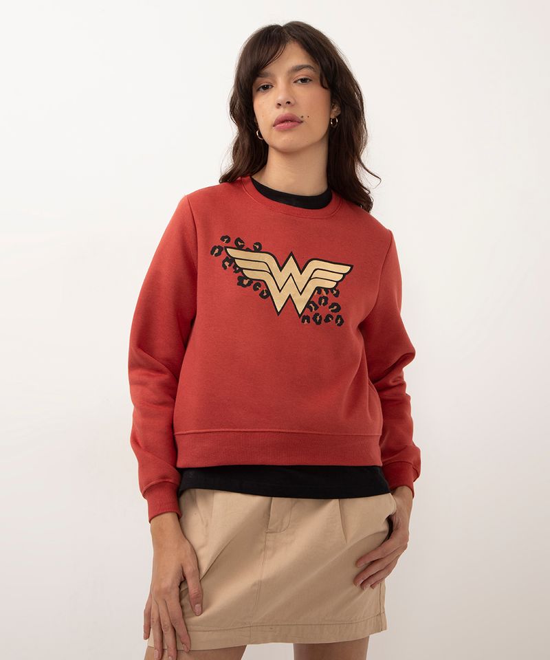 Combine o conforto do moletom com o poder da sua heroína favorita. Este blusão da Mulher Maravilha é a peça perfeita para adicionar um toque divertido e estiloso aos seus looks casuais. Confeccionado em moletom com interior felpado, ele garante um toque macio e aquecimento nos dias mais amenos, enquanto a modelagem reta oferece um caimento confortável e versátil.