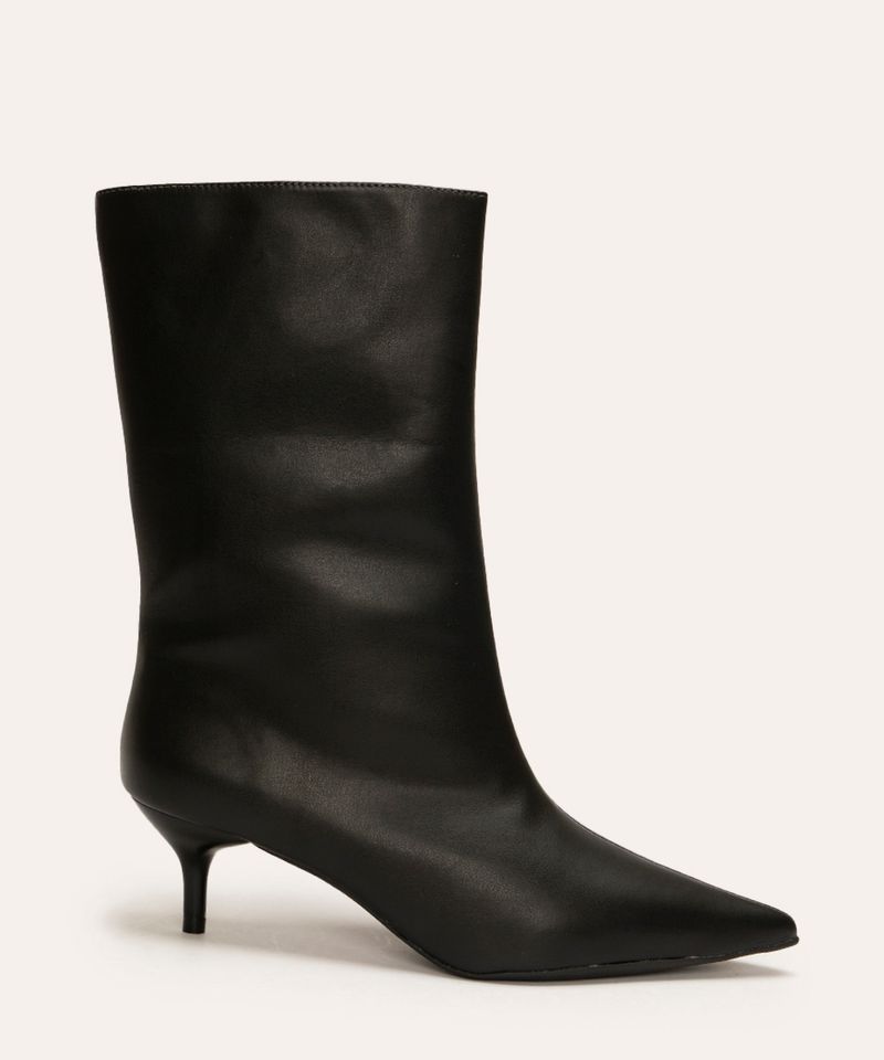 Eleve seus looks com esta bota de cano médio, um calçado que une elegância e atitude. Com um design moderno de bico fino e salto baixo, ela é a escolha perfeita para quem busca sofisticação sem abrir mão do conforto. Versátil, esta bota transita facilmente entre o dia e a noite, complementando desde produções casuais até as mais elaboradas.