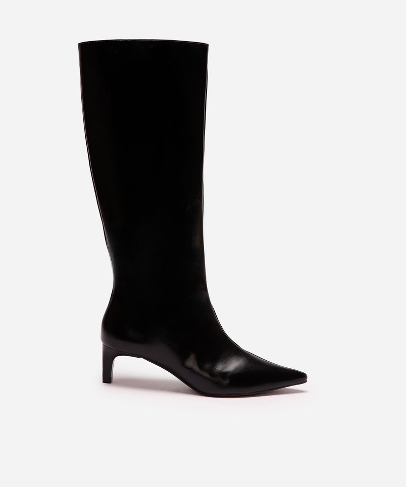 Eleve seus looks com esta bota de cano alto, um calçado que combina sofisticação e uma atitude moderna. Seu design elegante com bico fino e salto baixo oferece o equilíbrio perfeito entre conforto e estilo, tornando-a uma escolha versátil para diversas ocasiões. É a peça ideal para quem busca um sapato que transita facilmente do trabalho a eventos sociais.