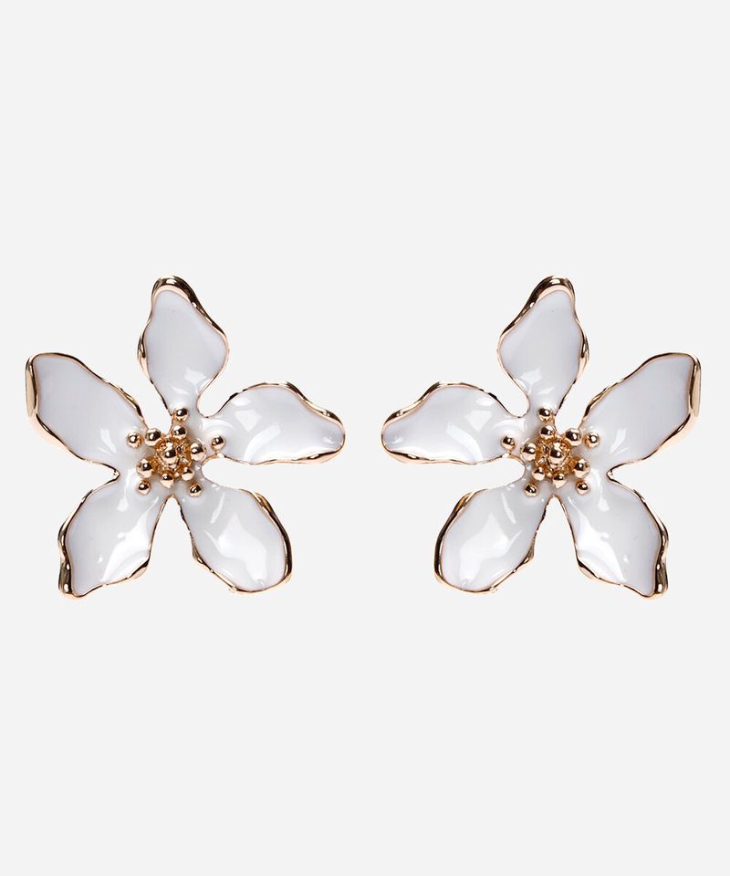 Par de brinco desenvolvido em metal com banho dourado com esmaltação. O modelo em formato floral com fechamento por tarraxa. Este é um acessório hipoalérgico livre de níquel. Evite contato com água, cosméticos e produtos químicos. Atritos também podem danificar o banho das peças e ao guardar separe as douradas das prateadas.