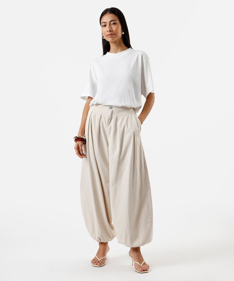 Renove seu estilo com esta calça feminina de sarja, uma peça que une conforto e as últimas tendências da moda. Com uma modelagem balonê, que remete ao estilo baggy, esta calça oferece um caimento solto e super confortável, ideal para o dia a dia. Confeccionada em sarja de algodão, ela é perfeita para compor looks cheios de personalidade, do casual ao mais elaborado.