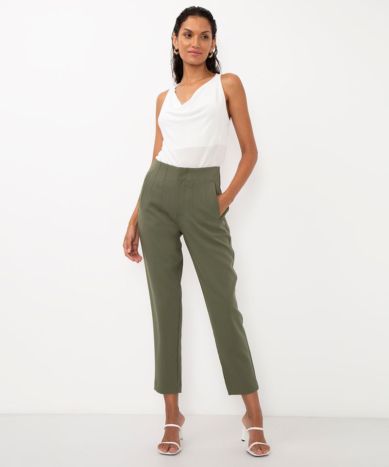 Sugestões de Uso e Combinações Para um look de trabalho sofisticado, combine esta calça feminina com uma camisa de botão e um blazer. Nos pés, um scarpin ou uma sandália de salto completam a produção. Se a ideia é um visual mais casual e moderno, aposte em uma camiseta básica, um top cropped e tênis brancos. Esta peça transita facilmente entre o formal e o despojado, adaptando-se ao seu estilo.