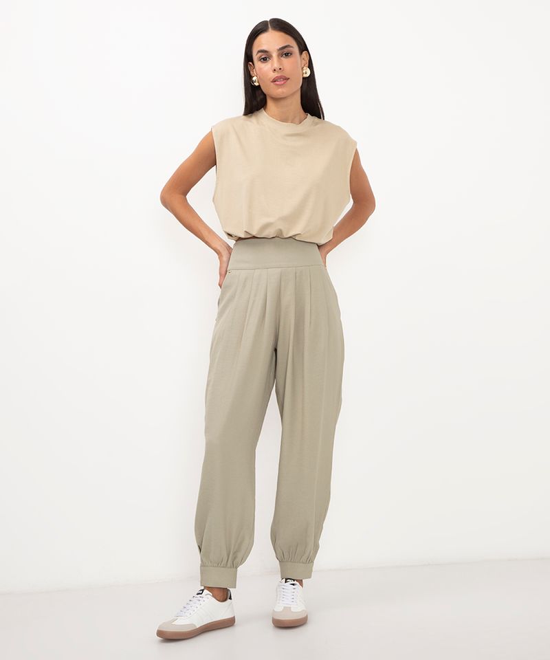 Sugestões de Uso e Combinações Esta calça baggy é extremamente versátil. Para um look de trabalho moderno, combine-a com uma camisa social e scarpin. Se a ideia é um visual casual-chic para o fim de semana, aposte em uma t-shirt básica, um top cropped ou uma regata e complete com tênis ou sandálias rasteiras. A peça transita facilmente entre o dia e a noite, adaptando-se ao seu estilo.