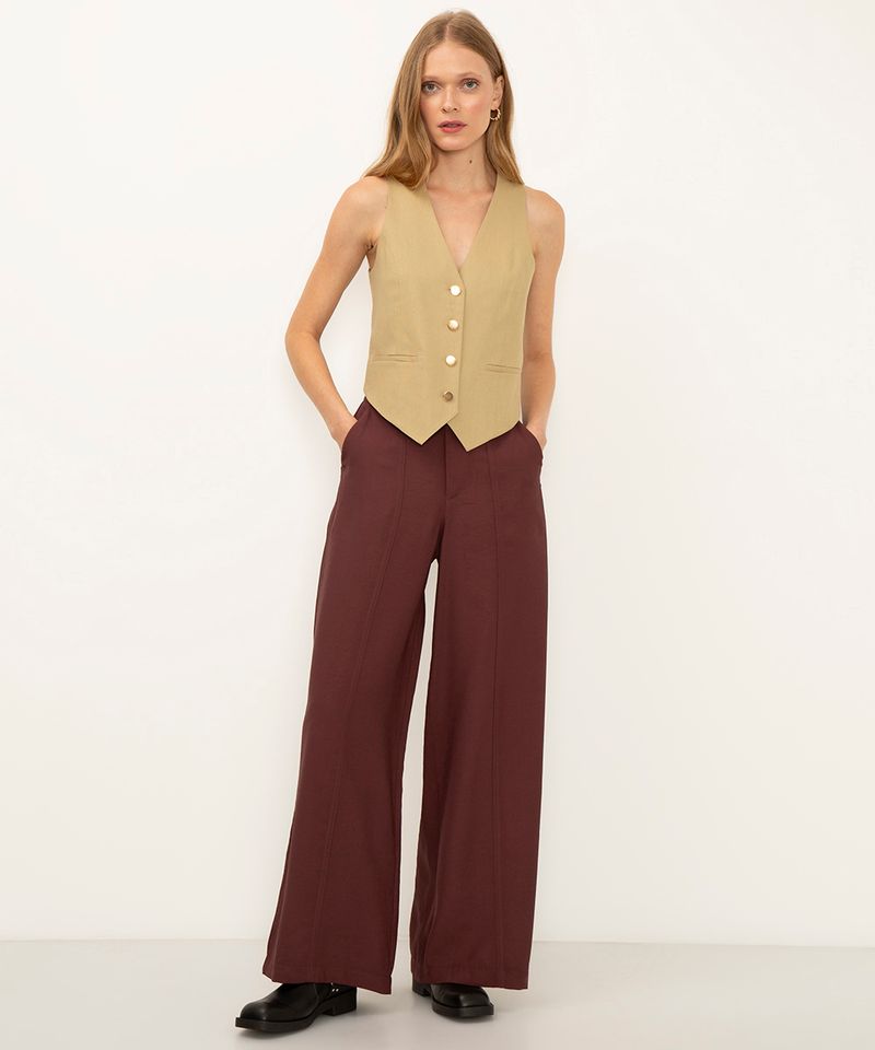 Sugestões de Uso e Combinações Para um look de trabalho moderno, combine esta calça de alfaiataria com uma camisa de botão e um blazer acinturado. Se a ocasião for mais descontraída, aposte em uma blusa cropped ou uma regata de malha e sandálias rasteiras. A versatilidade desta calça feminina larga permite transitar entre o formal e o casual, adaptando-se facilmente com sapatos de salto ou tênis.