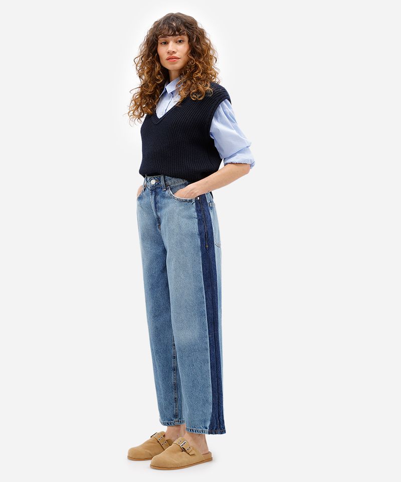 Sugestões de Uso e Combinações Para um look casual e descontraído, combine esta calça jeans de cintura alta com uma camiseta básica e tênis. Se a ideia é uma produção mais arrumada, aposte em uma camisa de botão e um colete de tricô, finalizando com mules ou sapatilhas. Nos dias mais frios, botas de cano curto também são uma ótima escolha, criando um visual urbano e cheio de atitude.