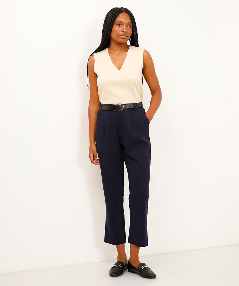 Esta calça feminina se destaca por seus detalhes sofisticados: