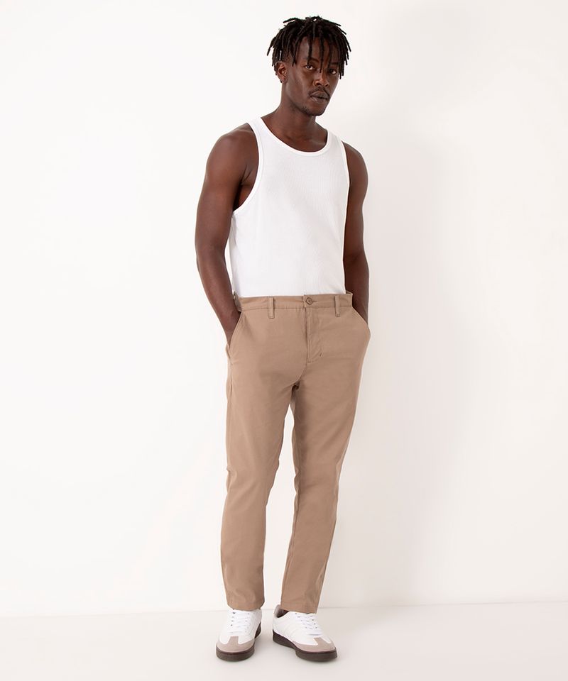 Renove seu estilo com a calça chino masculina, uma peça que une o clássico e o contemporâneo. Com modelagem carrot, ela oferece um caimento confortável e moderno, mais solto na parte de cima e ajustado no tornozelo. Confeccionada em sarja de algodão com elastano, esta calça preta masculina proporciona flexibilidade e um toque macio, sendo a escolha ideal para compor looks versáteis para o dia a dia.