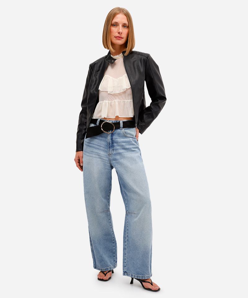 Sugestões de Uso e Combinações Esta calça jeans é extremamente versátil. Para um look casual e urbano, combine-a com uma camiseta básica, um top cropped e tênis. Se a ideia é uma produção mais elaborada, aposte em blusas de tecido fluido, jaquetas e sandálias de salto, criando um contraste interessante entre o despojado do jeans e a elegância de outras peças.