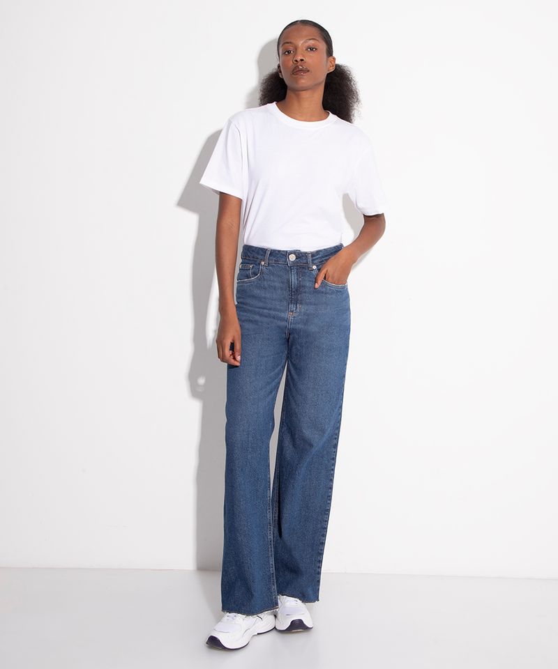 Combine modernidade e conforto com esta calça jeans wide leg da Mindse7. Com um caimento solto que valoriza o movimento e uma lavagem escura super versátil, esta peça é um item indispensável para compor produções cheias de estilo. Seu design atemporal permite criar looks que vão do casual ao sofisticado sem esforço.