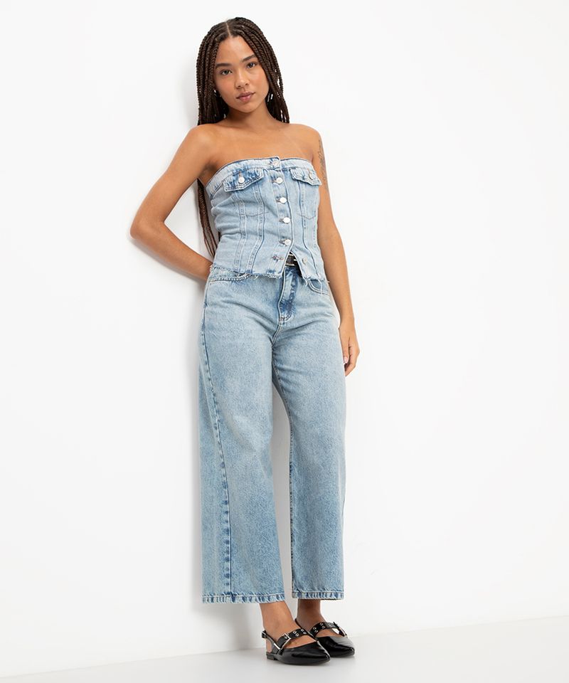Renove seu estilo com esta calça jeans wide leg cropped, a peça que une o conforto do jeans com as tendências mais atuais. Com uma modelagem larga e moderna, ela oferece liberdade de movimento e um visual despojado para o dia a dia. Confeccionada em jeans 100% algodão regenerativo, esta calça jeans feminina larga proporciona um toque macio e um caimento estruturado que se adapta a diversas ocasiões.