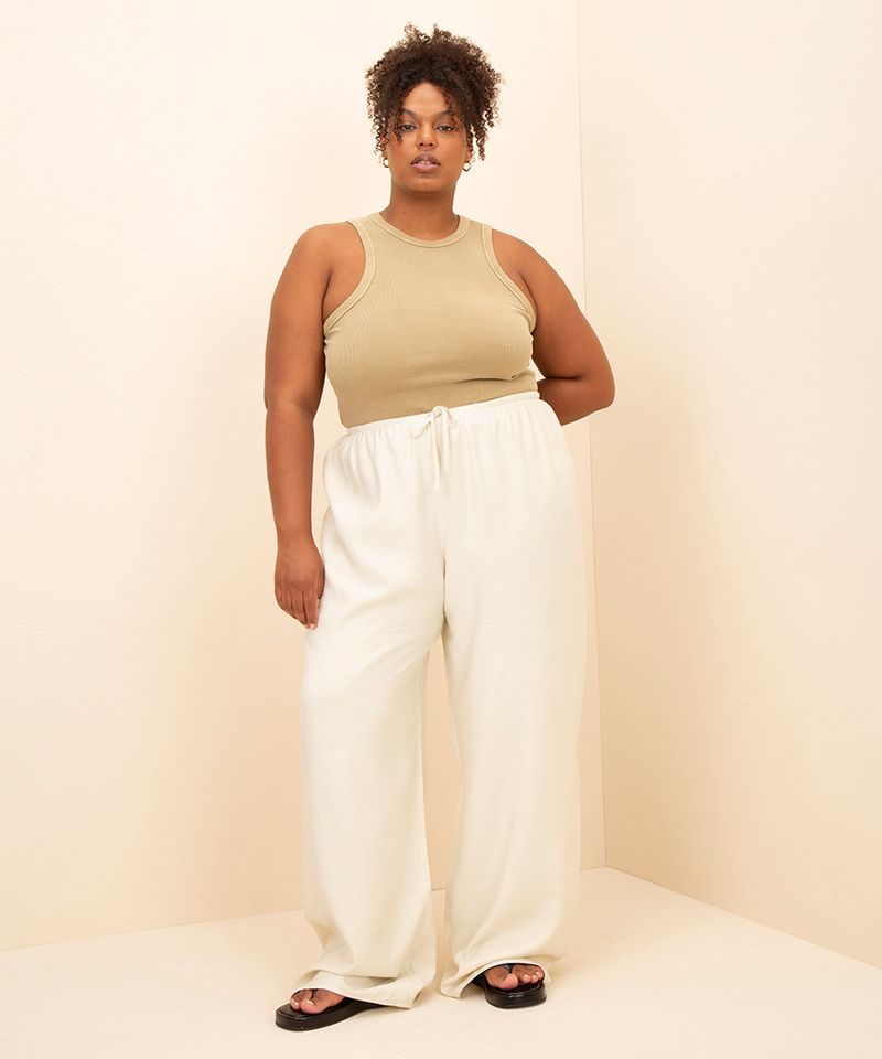 Sugestões de Uso e Combinações Para um visual casual e descontraído, combine a sua calça pantalona com uma regata básica, t-shirt estampada e sandálias rasteiras ou tênis. Se a ocasião pedir um toque de sofisticação, aposte em um top de tecido fino, um blazer alongado e sandálias de salto. Esta calça é uma peça versátil que transita facilmente entre um passeio diurno e um evento noturno mais arrumado.