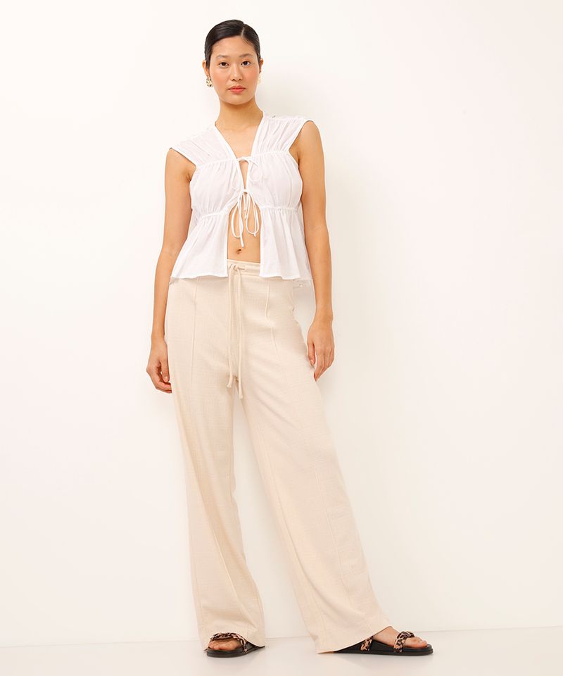 Esta calça feminina se destaca por seus detalhes cuidadosamente pensados: