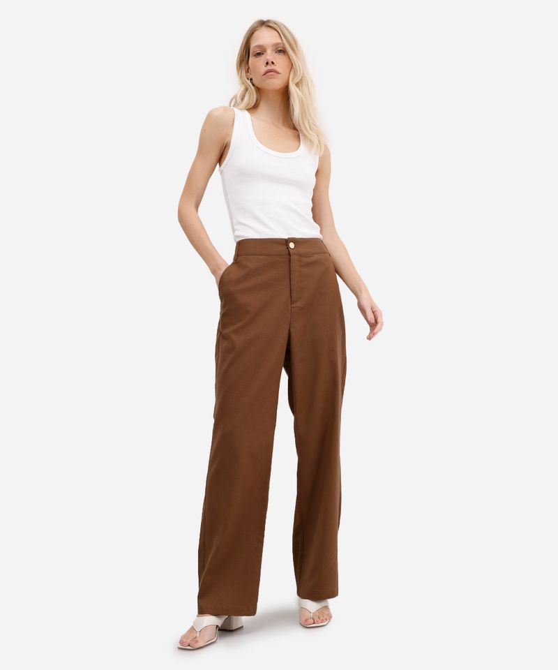 Eleve seu estilo com esta calça feminina de linho, uma peça que combina sofisticação e conforto de forma única. Com um caimento reto e solto, ela oferece liberdade de movimento e um visual alongado, valorizando a silhueta com elegância. O tecido com linho em sua composição garante um toque agradável e fresco, ideal para criar produções versáteis que vão do casual ao formal com muita personalidade.