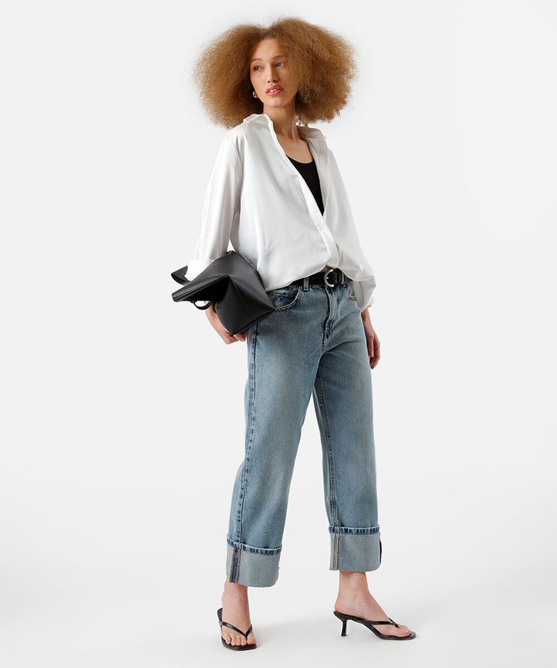 Sugestões de Uso e Combinações Para um visual descontraído, combine esta calça jeans larga feminina com uma camiseta básica e tênis. Se a ideia é um look mais arrumado, aposte em uma blusa de tecido fluido e sandálias de salto ou mules. A barra dobrada valoriza os calçados e dá um toque de mestre ao styling, sendo uma peça perfeita para transitar entre o trabalho e o lazer com muito estilo.