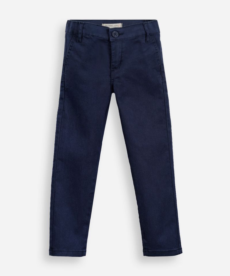 Esta calça infantil é a escolha perfeita para vestir os meninos com estilo e muito conforto. Com um design clássico e moderno, o modelo chino é super versátil, acompanhando os pequenos desde os passeios em família até as ocasiões mais especiais. Confeccionada em sarja com toque macio e elasticidade, a peça garante liberdade para todas as brincadeiras.