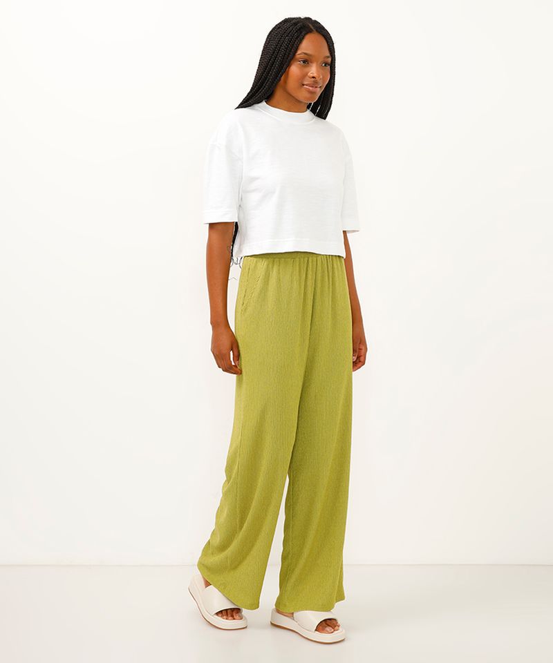 Combine conforto e estilo com esta calça feminina de modelagem wide leg. Com um caimento fluido e toque leve, esta peça é a escolha ideal para quem busca versatilidade sem abrir mão da elegância. Perfeita para criar looks que vão do casual ao sofisticado, ela se adapta facilmente a diversas ocasiões do seu dia a dia.