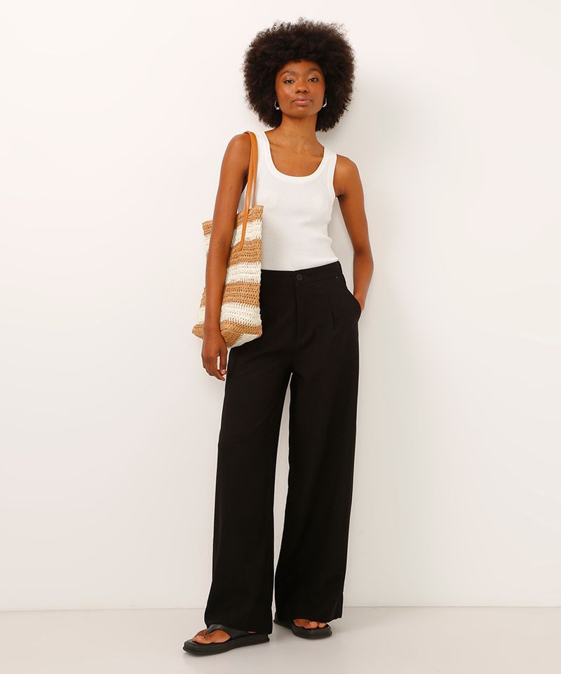 Descubra a versatilidade e o conforto da calça wide leg, uma peça essencial para compor looks modernos e elegantes. Confeccionada em tecido de viscose, esta calça feminina oferece um toque leve e um caimento fluido que acompanha seus movimentos. Seu design é perfeito para transitar entre o ambiente de trabalho e momentos de lazer, garantindo sempre um visual sofisticado.