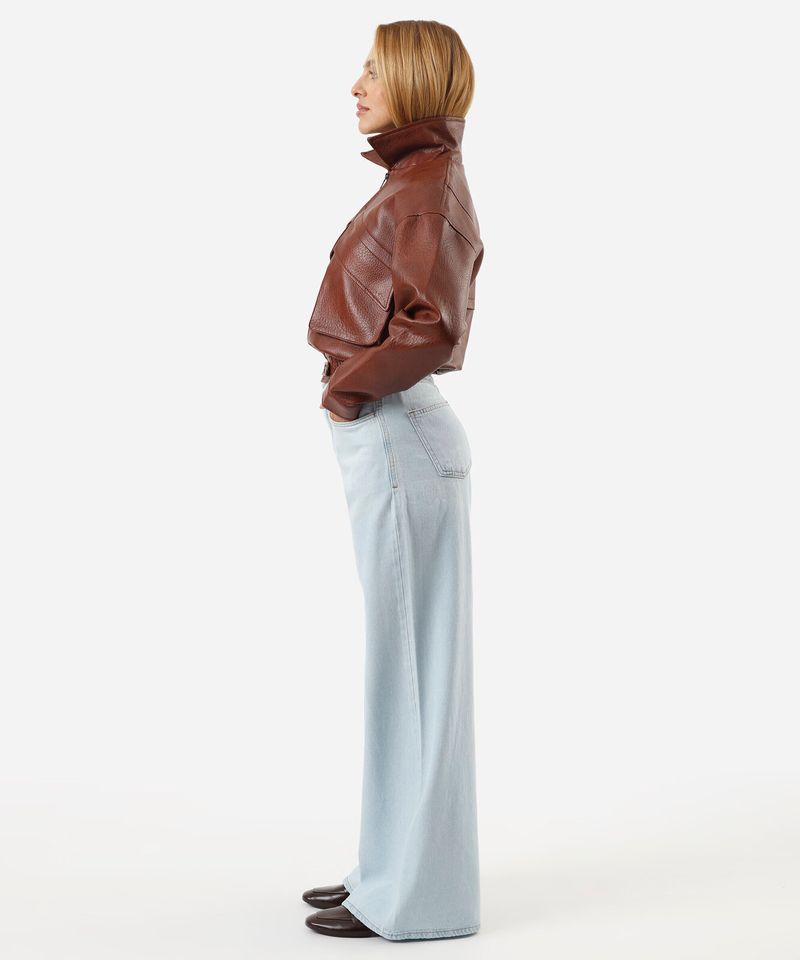 Esta calça jeans feminina larga foi pensada para valorizar suas produções com detalhes funcionais: