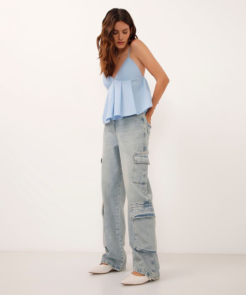 Sugestões de Uso e Combinações Versátil, esta calça jeans feminina larga transita facilmente entre diferentes estilos. Para um look casual e descolado, combine-a com um cropped ou uma camiseta básica e tênis. Se a ideia é uma produção mais elaborada, aposte em um body justo ou uma blusa de tecido leve, finalizando com sandálias de salto ou mules. Os bolsos cargo adicionam informação de moda e dispensam a necessidade de muitos acessórios.