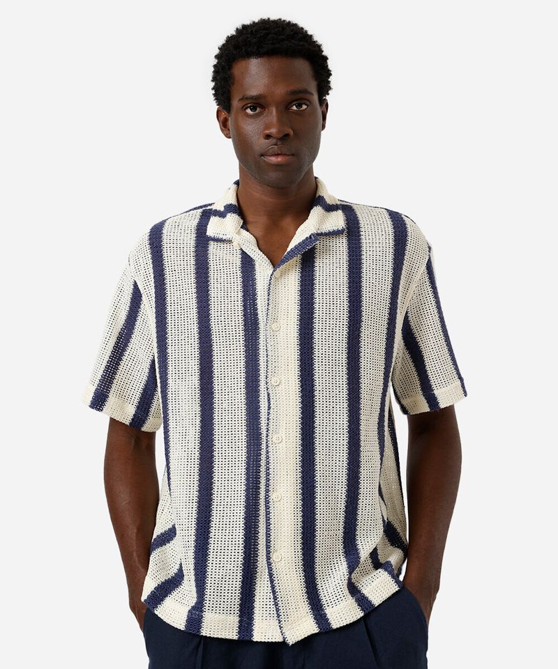 Esta camisa masculina de botão é a escolha perfeita para quem busca um visual moderno e confortável. Confeccionada em um tricô leve com tramas abertas, a peça oferece um toque texturizado e ótima respirabilidade, ideal para os dias mais quentes. Seu design versátil transita facilmente entre o casual e o elegante, garantindo estilo em qualquer ocasião.