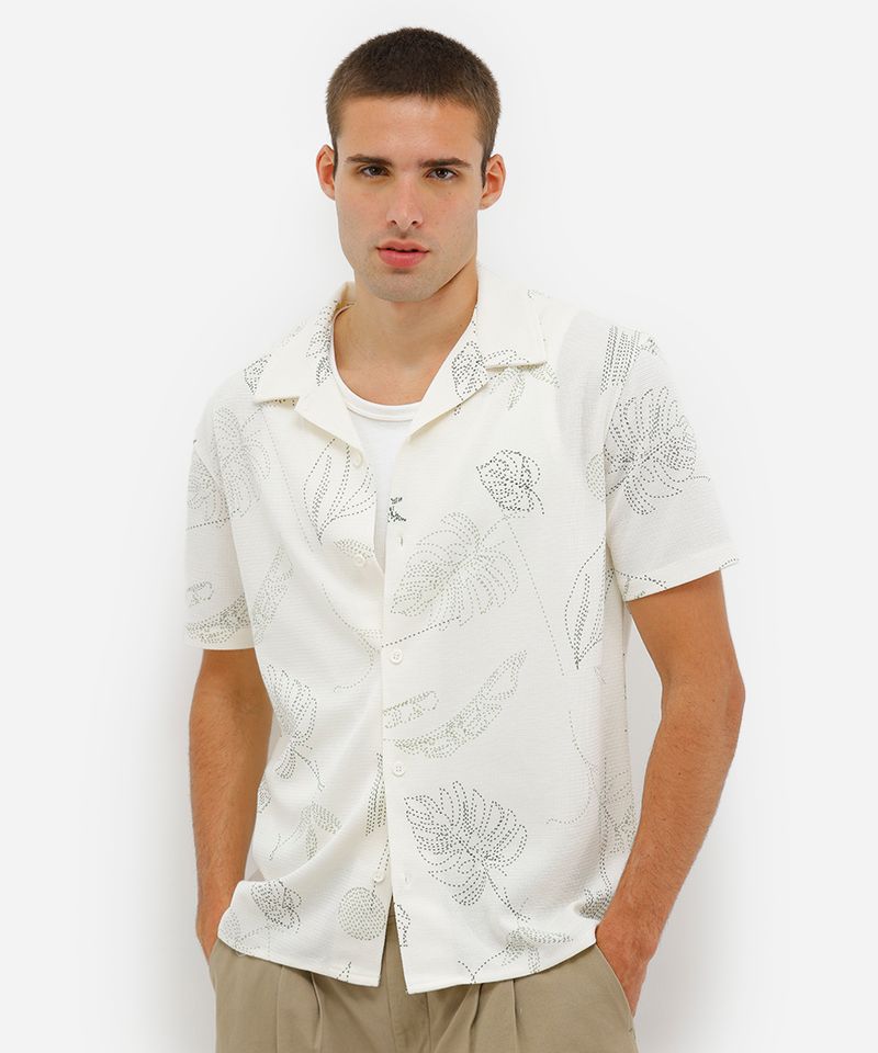 Renove seu visual com esta camisa masculina estampada, perfeita para quem busca estilo e conforto no dia a dia. Confeccionada em malha texturizada com um toque macio, ela possui um caimento reto e relaxado que garante liberdade de movimento. Seu design moderno com estampa de folhagens pontilhadas a torna uma peça versátil para diversas ocasiões casuais.