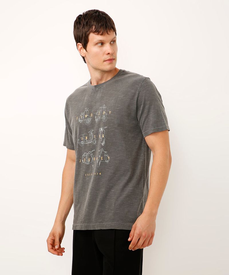 Esta camiseta masculina estampada se destaca por seus detalhes pensados para o seu dia a dia: