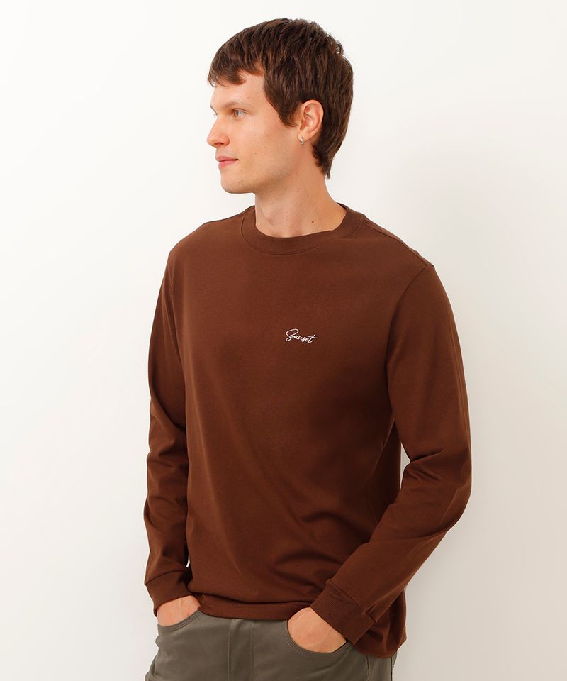 Renove seu estilo com esta camiseta de manga longa masculina, a peça ideal para um visual despojado e confortável. Confeccionada em moletinho de algodão, ela oferece um toque macio e um caimento solto que garante liberdade de movimentos. O bordado "Sunset" adiciona um detalhe sutil e moderno, perfeito para quem busca um item versátil para o dia a dia.