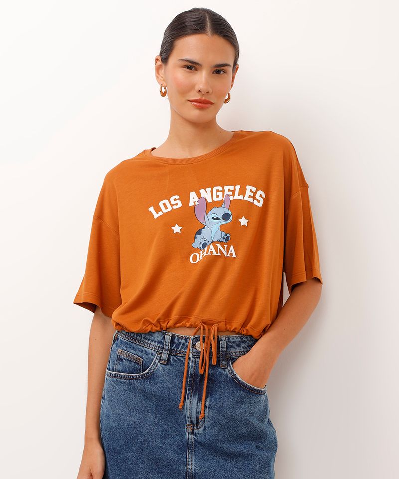 Adicione um toque divertido e estiloso ao seu visual com esta camiseta feminina do Stitch. Confeccionada em malha de viscose, a peça oferece um caimento leve e um toque extremamente macio, ideal para garantir conforto durante todo o dia. Seu design moderno com amarração na barra permite ajustar o comprimento, tornando-a uma blusa versátil para diversas combinações.