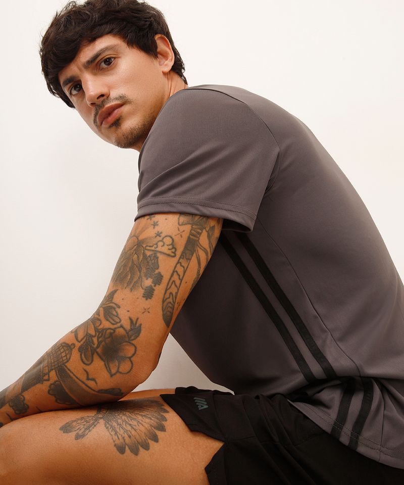 Sugestões de Uso e Combinações Para um look de academia completo, combine esta camiseta esportiva com um shorts de performance e seu tênis favorito. A versatilidade da peça também permite o uso em momentos casuais, como uma caminhada no parque ou em atividades do dia a dia, bastando combiná-la com uma bermuda de moletom ou calça jogger para um visual despojado e confortável.