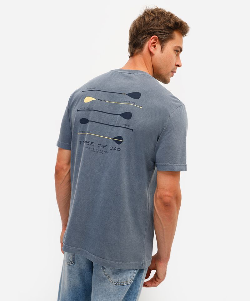 Renove seu estilo casual com esta camiseta masculina, perfeita para quem busca conforto e personalidade. Confeccionada em malha de algodão com toque macio, a peça recebe um tratamento estonado que confere um visual moderno e despojado. Sua estampa inspirada em remos adiciona um toque náutico e autêntico, ideal para compor looks para o dia a dia.