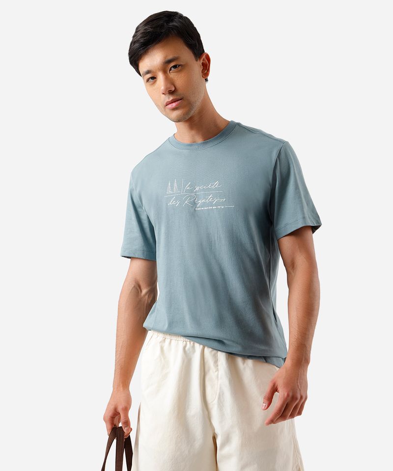Renove seu estilo com esta camiseta masculina, uma peça que une conforto e um toque despojado. Confeccionada em malha macia de algodão, ela proporciona um caimento solto e agradável ao corpo, ideal para o dia a dia. A estampa frontal com temática marítima traz um ar moderno e versátil, permitindo criar diversas combinações.