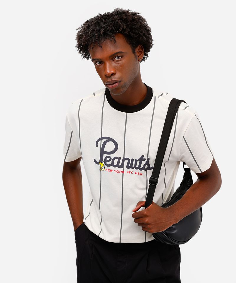 Adicione um toque divertido e nostálgico ao seu guarda-roupa com esta camiseta masculina estampada. Confeccionada em malha macia 100% algodão, a peça oferece um toque suave e respirabilidade, ideal para o dia a dia. Seu design combina a clássica padronagem listrada com o icônico Snoopy, criando um visual moderno e cheio de personalidade.