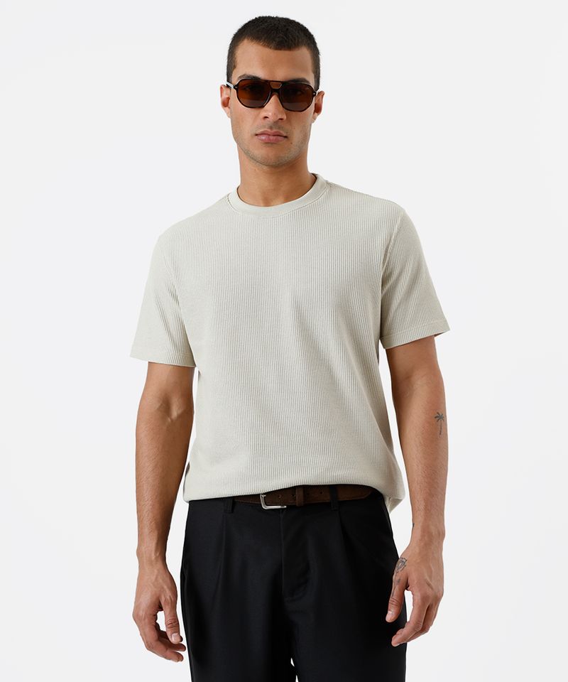 Sugestões de Uso e Combinações Para um visual despojado e moderno, combine esta camiseta com uma bermuda jeans ou de sarja e seu tênis favorito. Se a proposta é um look mais arrumado, aposte na combinação com uma calça de alfaiataria ou chino e um sapatênis. A textura diferenciada da peça eleva qualquer produção básica, tornando-a uma escolha inteligente para diversas ocasiões.