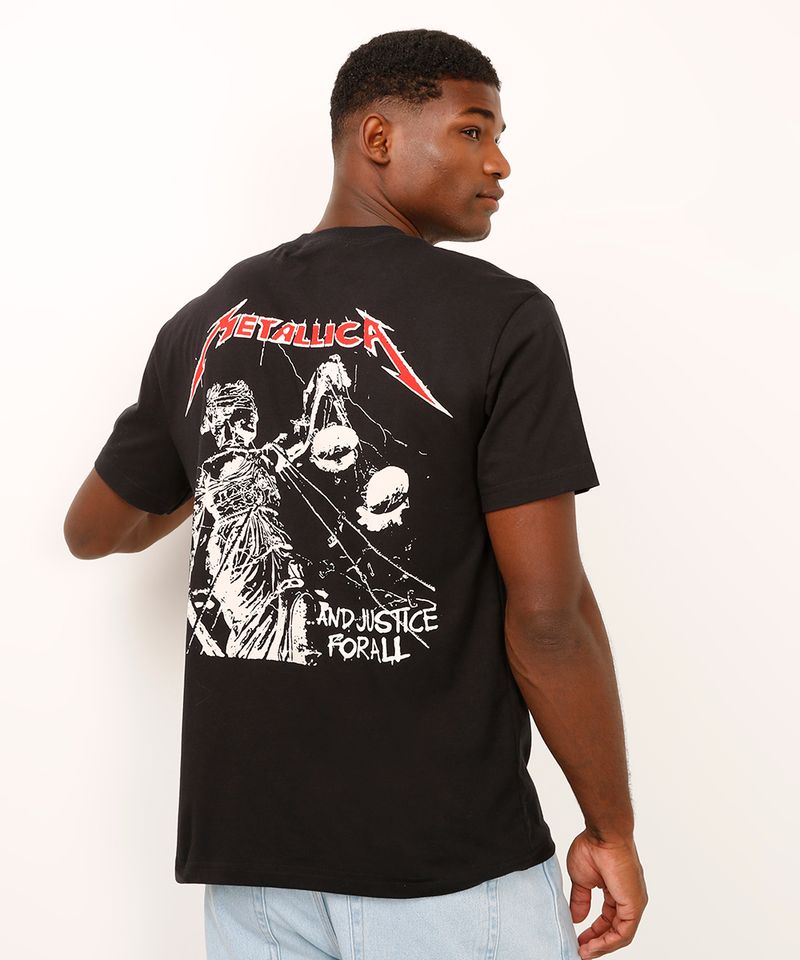 Mostre sua paixão por uma das maiores bandas de rock com esta camiseta masculina do Metallica. Confeccionada em malha de algodão macia, ela oferece conforto e respirabilidade para o dia a dia. A modelagem relaxed garante um caimento solto e despojado, sendo a peça perfeita para compor looks cheios de atitude e personalidade.
