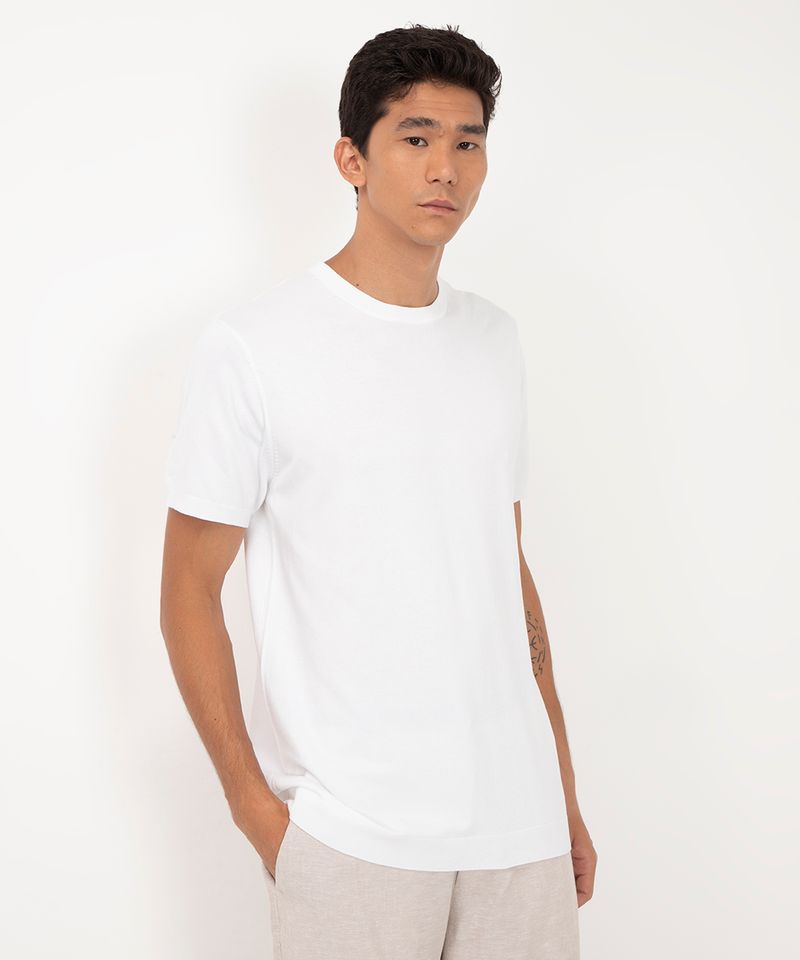 Renove seu visual com esta camiseta masculina de tricô, uma peça que combina a leveza de uma camiseta com a sofisticação da malha. Seu tecido com toque macio e caimento impecável proporciona conforto para o dia a dia, tornando-a uma escolha versátil para diversas ocasiões. É a alternativa perfeita para elevar seus looks básicos com um toque de elegância.