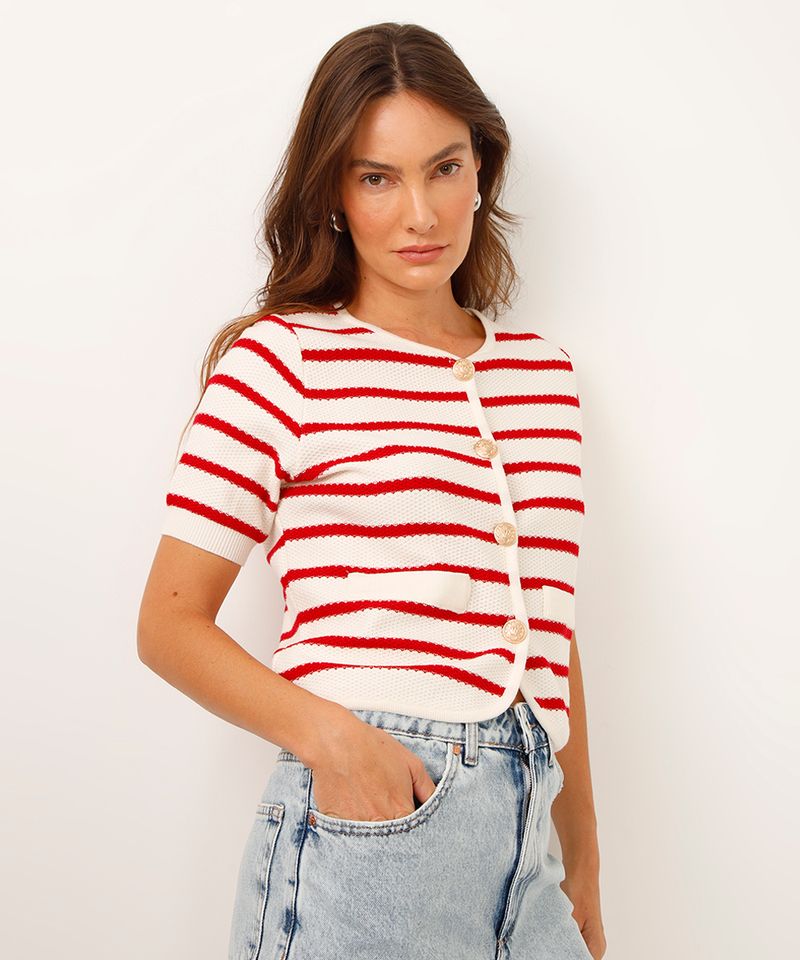 Sugestões de Uso e Combinações Use-o fechado como uma blusa de tricô, combinado com uma calça jeans de cintura alta para um visual casual e moderno. Para uma proposta de sobreposição, vista-o aberto sobre uma regata básica com shorts de alfaiataria ou saias. Este casaqueto feminino é perfeito para transitar do trabalho ao lazer com muito estilo.