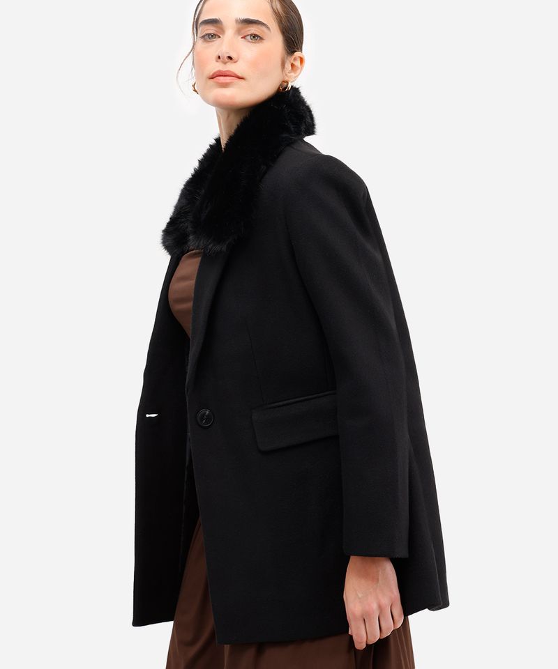 Este casaco feminino alongado é a peça que une elegância e versatilidade para os dias mais frios. Com um caimento reto e estruturado, ele oferece um visual sofisticado sem abrir mão do conforto. O grande diferencial é sua gola de pelúcia removível, que permite transitar entre um estilo clássico e um toque mais glamouroso, adaptando-se perfeitamente a diferentes ocasiões.