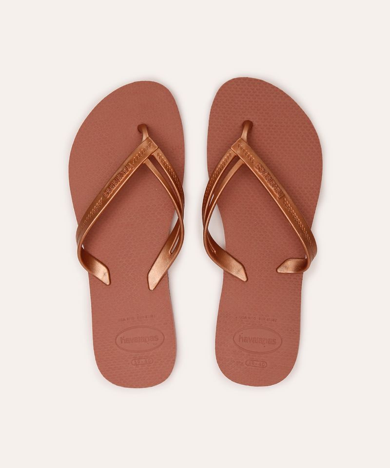 Sugestões de Uso e Combinações Perfeito para o dia a dia, este chinelo Havaianas transita facilmente entre a praia e a cidade. Combine-o com vestidos fluidos, saias ou shorts jeans para um visual descontraído e fresco. O detalhe metalizado nas tiras permite que ele também complemente looks mais arrumados para um passeio ao ar livre ou um encontro casual no fim de tarde. É o calçado ideal para quem valoriza praticidade com um toque de brilho.